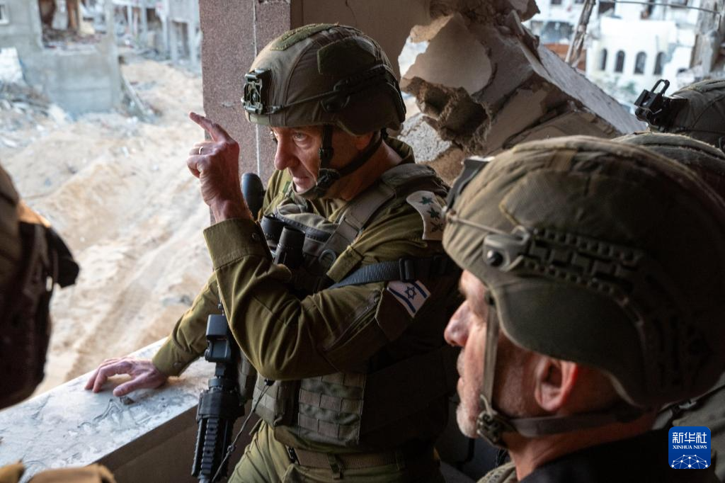 10月17日,以色列國防軍總參謀長哈萊維(中)在加沙地帶辛瓦爾死亡地點附近視察。新華社發(fā)(以色列國防軍供圖)