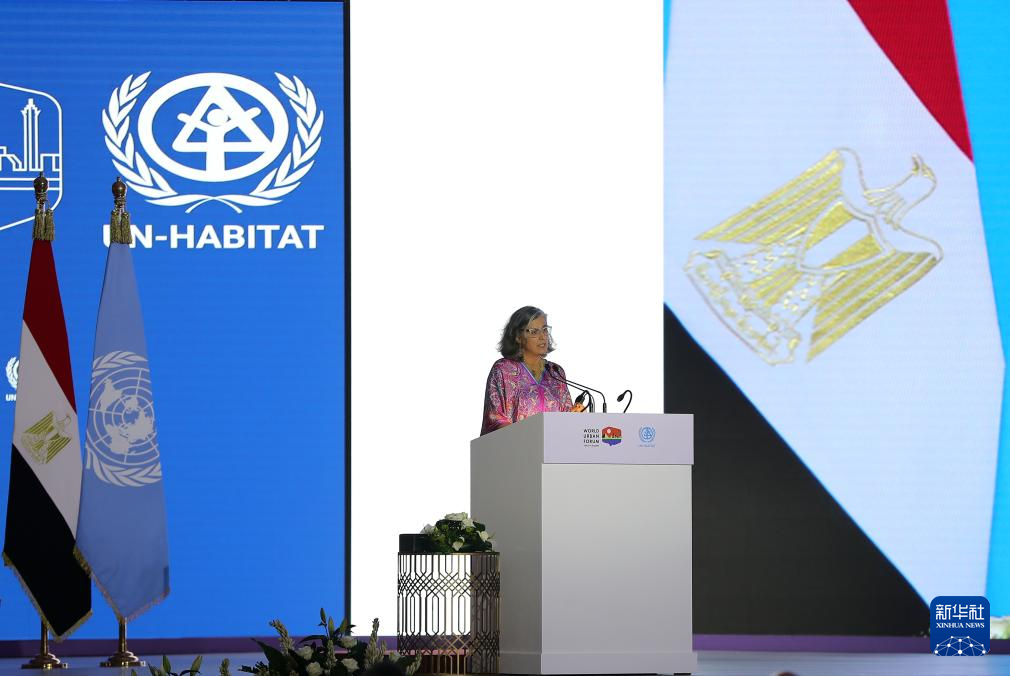 11月4日,在埃及首都開羅,聯合國人居署執行主任阿納克勞迪婭·羅斯巴赫在第12屆世界城市論壇開幕式上講話。新華社記者 王東震 攝