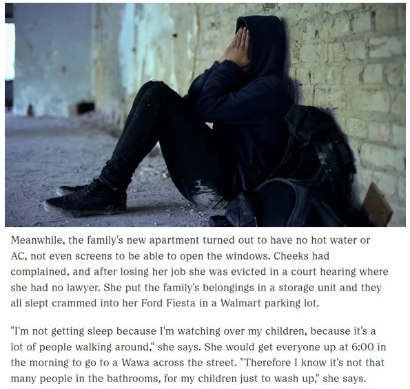 在弗吉尼亞州生活的奇克斯是一位獨自撫養四個孩子的母親。由于失業后無力負擔房租,她和四個孩子的臨時住房是一輛小轎車,這輛車長期停在一家超市的停車場里。