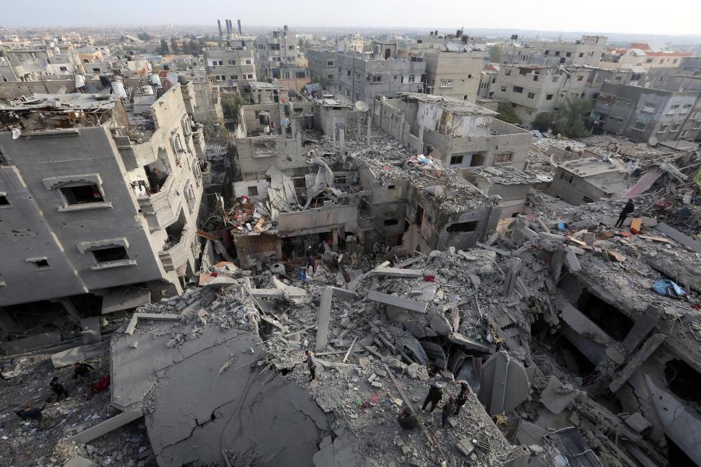 12月7日,在加沙地帶中部努賽賴特難民營,人們走過以軍轟炸后的建筑廢墟。新華社發(里澤克·阿卜杜勒賈瓦德攝)