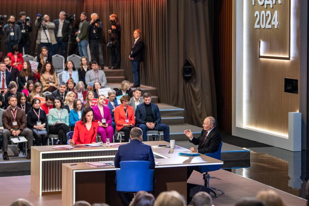 “年度盤點”當地時間中午播出,普京以現場問答和直播連線形式回答記者和俄羅斯公民的提問。根據“俄羅斯24”電視臺的數據,直播連線開始前3個小時,俄羅斯人已向普京提出超過200萬個問題。