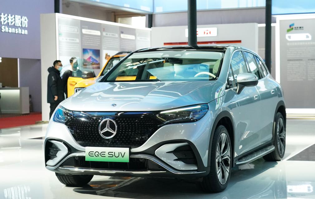 2023年11月30日在北京舉辦的首屆中國國際供應鏈促進博覽會智能汽車鏈展區拍攝的奔馳EQE SUV。新華社記者任超攝