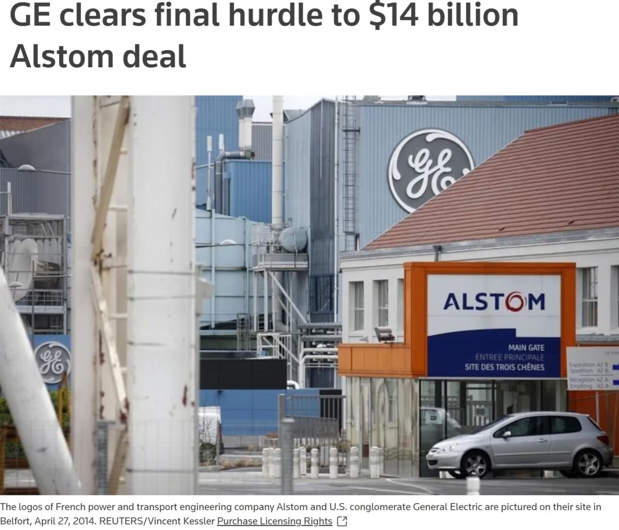 △路透社:2015年9月,美國通用電氣公司掃清了以140 億美元收購阿爾斯通電力設備業務的最后障礙。