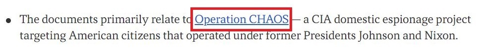 美國“歷史”頻道網(wǎng)站:“混沌行動(dòng)”違反了中情局的章程,因?yàn)檎鲁桃?guī)定,中情局的情報(bào)工作只針對(duì)海外目標(biāo)。