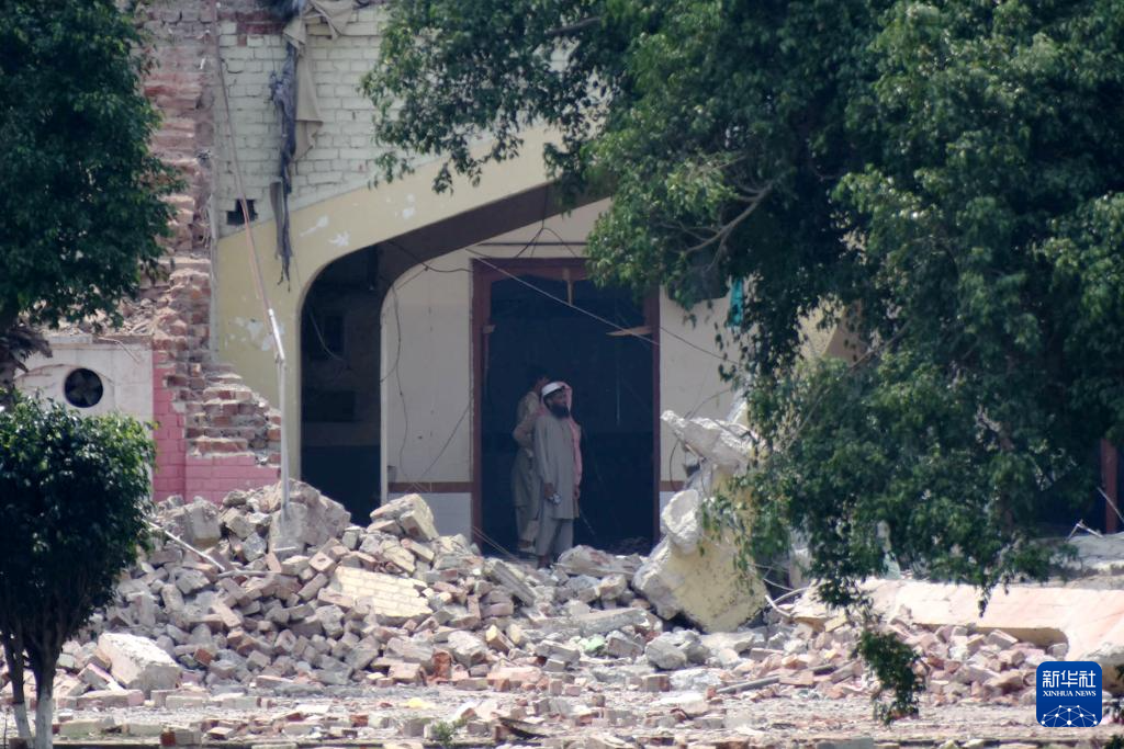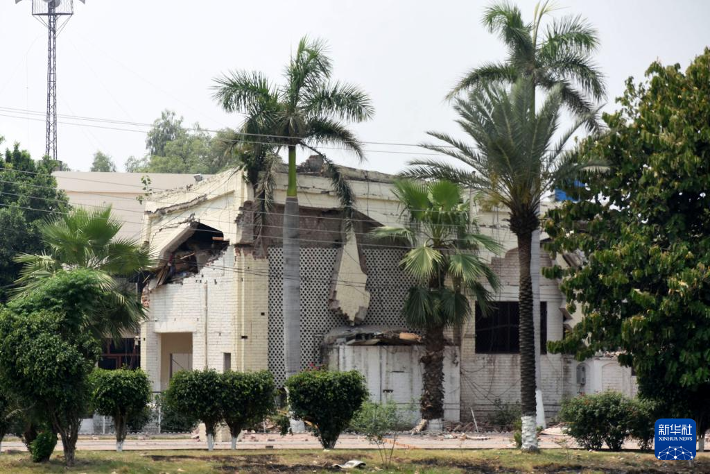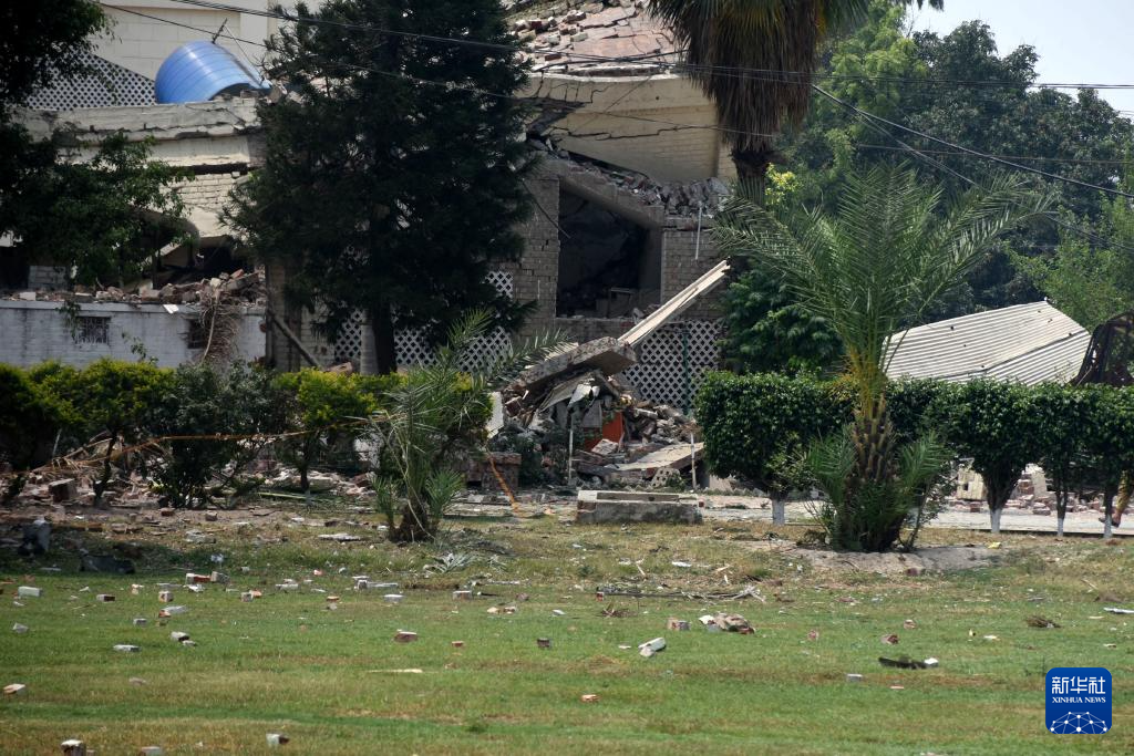 這是5月7日在巴基斯坦東部旁遮普省謝赫布拉地區穆里德蓋鎮拍攝的遭印度導彈破壞的建筑。新華社發(薩賈德攝)