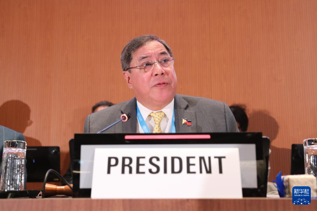 5月20日,在瑞士日內瓦,第78屆世界衛生大會主席赫爾博薩宣布審議通過“大流行協定”。新華社記者 杜哲宇 攝