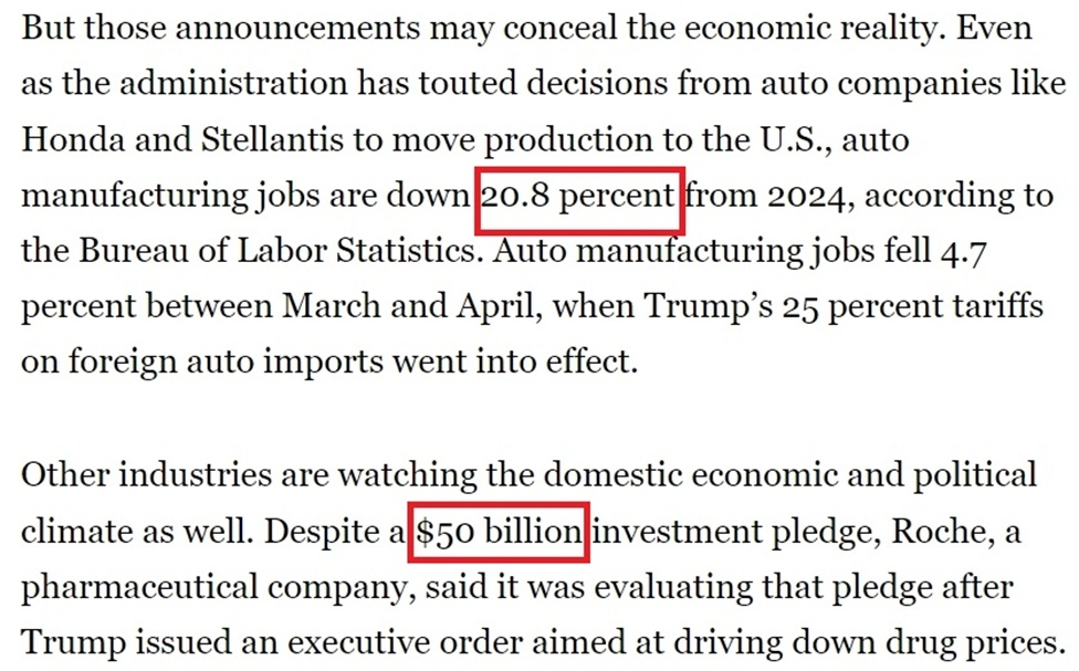 《政治報》的報道提到,在關稅政策深陷爭議的情況下,美國政府當前非常渴望對外展示“美國經濟增長”的跡象,以至于一些公司只要口頭表示“考慮增加在美國的產能”就能得到白宮的贊賞。但現實卻是,許多白宮吹噓的企業投資計劃要么已經籌備多年,要么被人為夸大,不少還可能在未來生變。