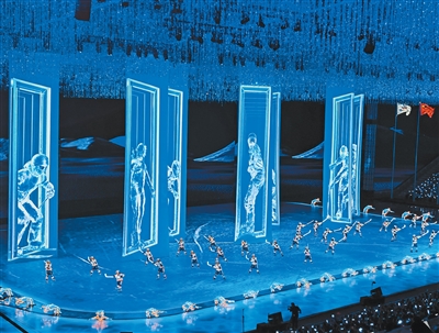 在哈爾濱第九屆亞洲冬季運動會開幕式上,巴可投影機呈現精彩的舞美效果。