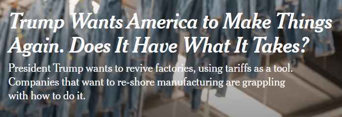 美國政府挑起了一場全球貿(mào)易戰(zhàn),它賭的是對(duì)其他國家征稅將會(huì)讓就業(yè)和工廠“重回”美國。然而,《紐約時(shí)報(bào)》近日發(fā)表的一篇文章對(duì)這一策略提出了強(qiáng)烈質(zhì)疑,并揭示了美國制造業(yè)回流面臨的巨大挑戰(zhàn)。