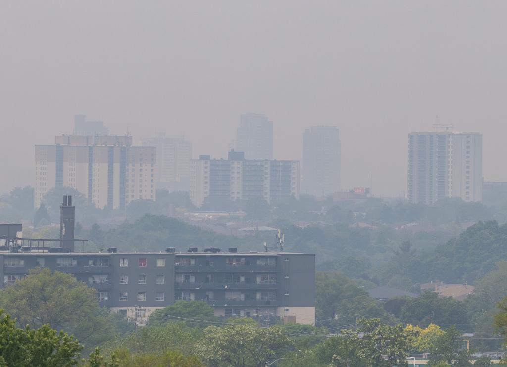 6月6日,加拿大多倫多市區籠罩在煙塵中。新華社發(鄒崢攝)