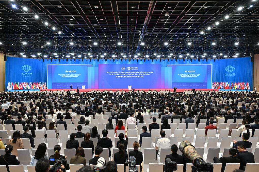 這是6月26日拍攝的亞洲基礎設施投資銀行第十屆理事會年會開幕式現場。新華社記者李鑫攝