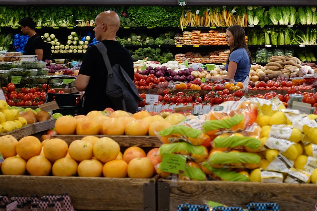當地時間2024年7月11日,美國紐約曼哈頓一家超市的顧客在購買水果。