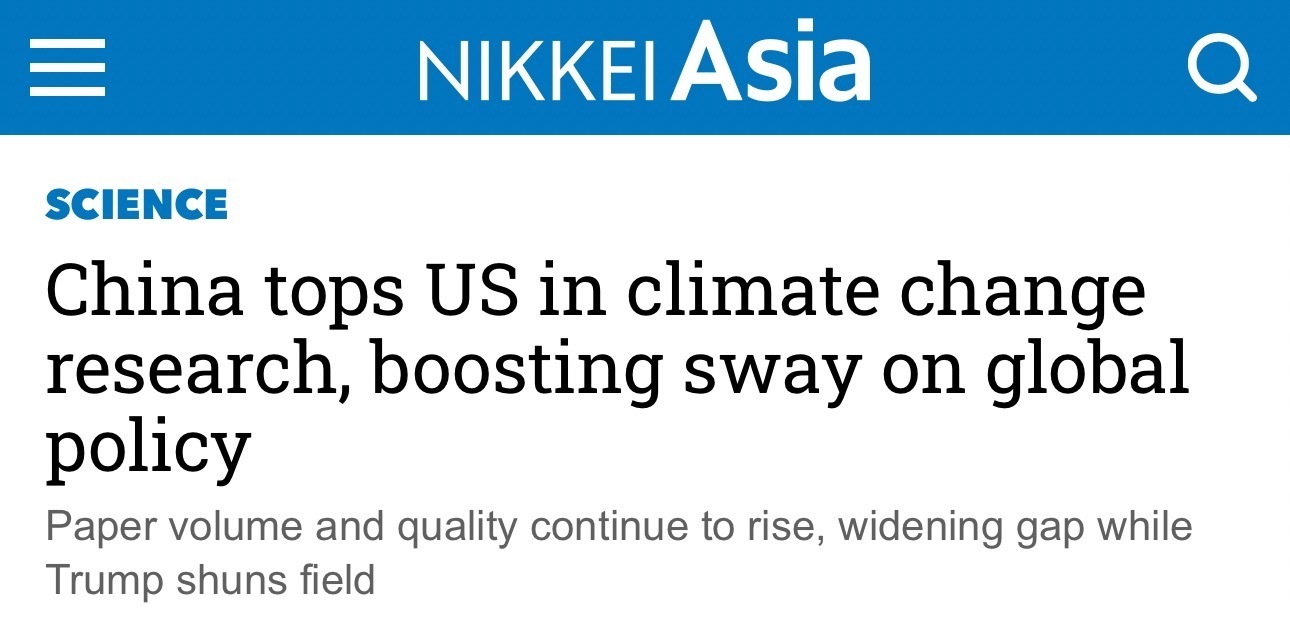 文章援引東京大學教授兼氣候變化專家江森清太的觀點指出,中國的研究能力在各個領域都呈現出強勁的上升勢頭,其在氣候變化研究領域的國際影響力也將持續擴大。