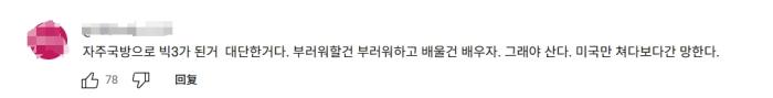 有韓國網(wǎng)友表示,對中國除了羨慕還是羨慕,韓國一定要向中國學習,如果(韓國)只看美國的眼色,就會“亡國”。