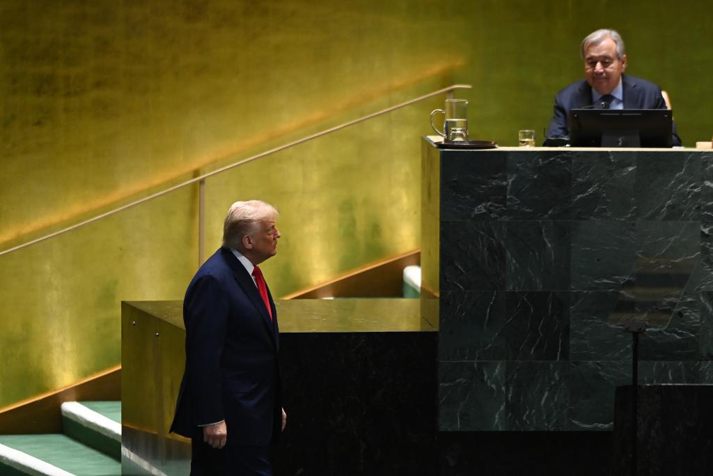 9月23日,在位于紐約的聯合國總部,美國總統特朗普(左)在第80屆聯合國大會一般性辯論上準備登臺發言。新華社記者李睿攝