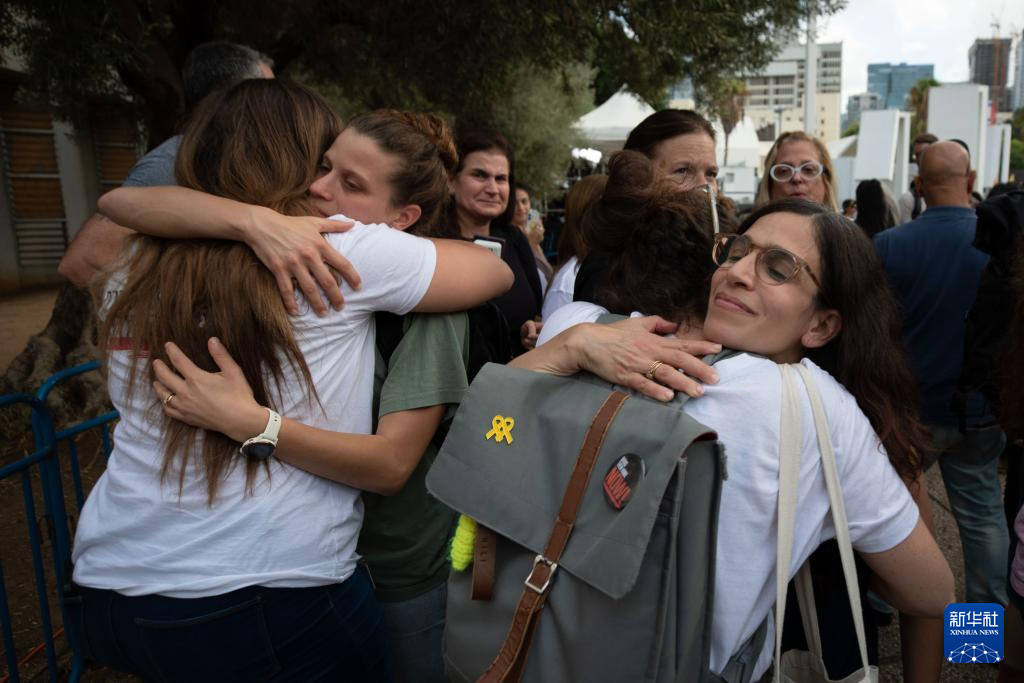 當9日加沙停火第一階段協議達成的消息傳來,在以色列國防部大樓對面的廣場上,被扣押人員馬坦的母親艾納夫與周圍的人相擁而泣。她高喊:“從現在起,這里叫希望廣場!”