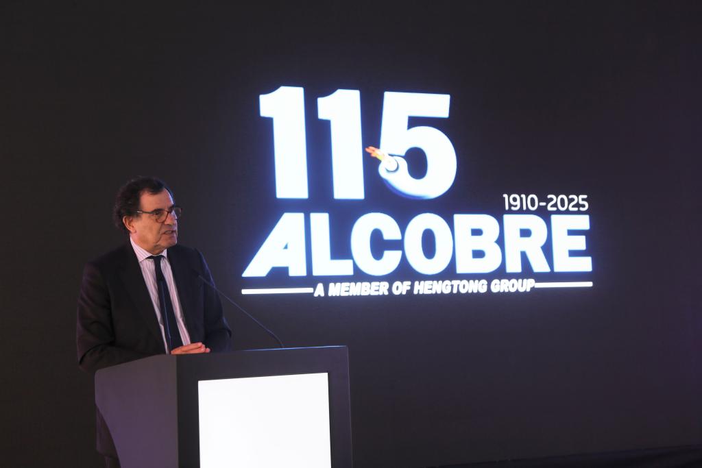 10月3日,葡萄牙經濟兼國土融合部長曼努埃爾·卡斯特羅·阿爾梅達在葡萄牙北部奧瓦爾市舉行的阿爾科夫雷電纜廠115周年慶典儀式上致辭。新華社記者荀偉攝