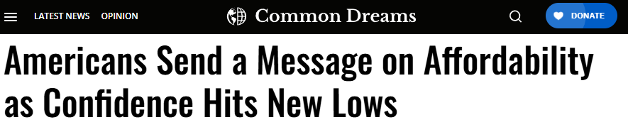 “基層合作組織”(Groundwork Collaborative)政策與倡導部門主管亞歷克斯·雅克茲指出,美民眾對經濟的信心下滑源于實際生活壓力的加重。他認為,當前政府在經濟管理上未能有效改善民生,反而導致家庭債務創下新高,物價不斷上漲,信心指數自然跌至低谷。