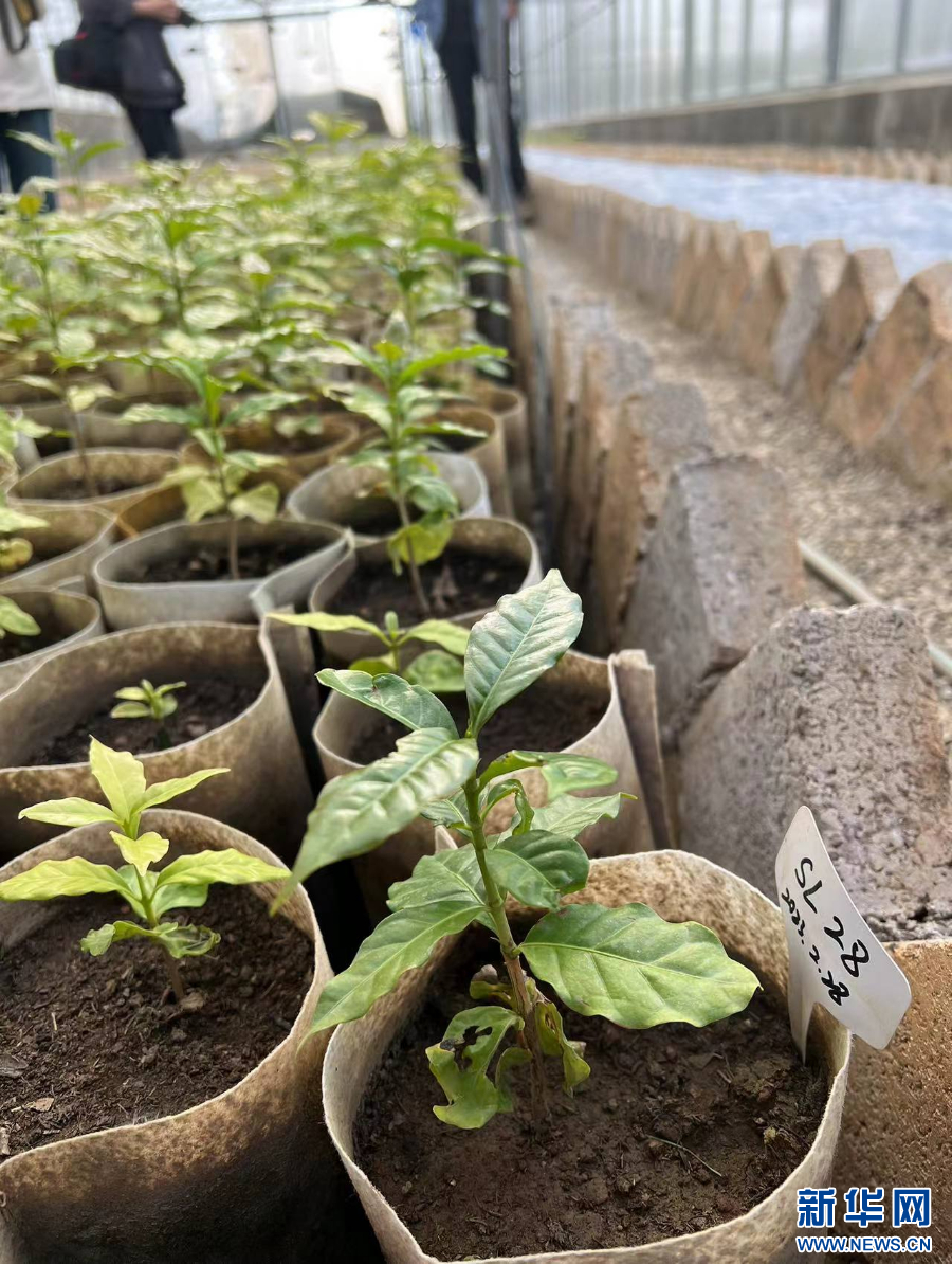 山頂一號咖啡莊園自行培育的咖啡苗(4月2日攝)。新華網 楊楨宇 攝