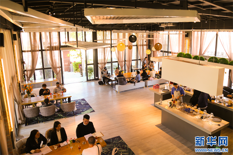 游客在比頓咖啡莊園的音樂咖啡館里小憩(資料圖)。新華網發(隆陽區委宣傳部 供圖)