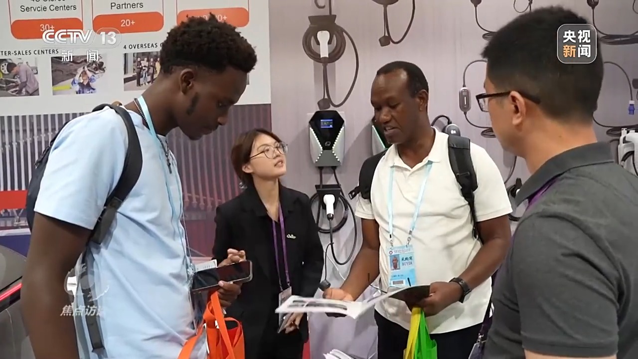 除了新能源汽車以外,記者在現場還發現,參展的鋰電池、光伏、儲能、充電樁等新能源相關企業也有很多。上海白象天鵝是生產電池的老牌國企,他們不僅針對歐美高端市場推出了“光伏+鋰電池”的儲能套餐,還特別針對非洲一些相對落后地區推出了“小而美”的解決方案。