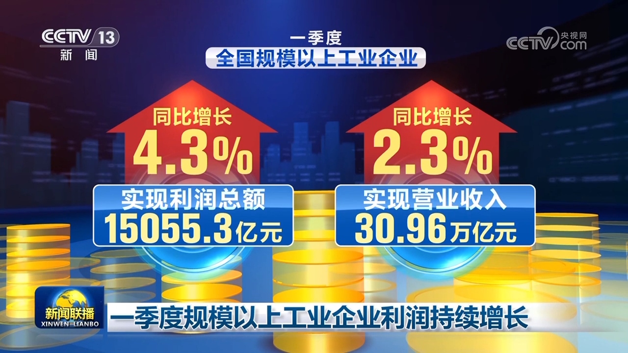 一季度,全國規模以上工業企業實現利潤總額15055.3億元,同比增長4.3%,實現營業收入30.96萬億元,同比增長2.3%,工業企業利潤保持增長,工業企業營收繼續恢復。