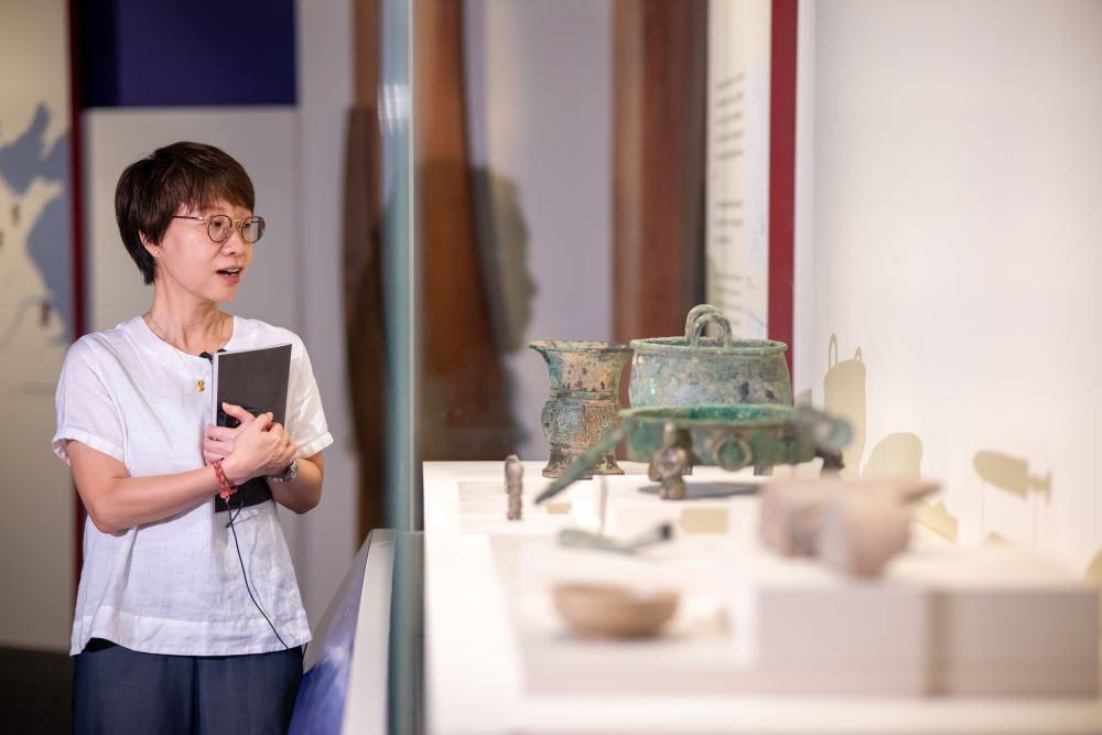 策劃、研究、選品,一年的密切合作為展覽注入巧思:展覽兼具學(xué)術(shù)性與教育性,部分內(nèi)容特意參考香港中學(xué)歷史教材;入選文物涉及多家機(jī)構(gòu),各單位經(jīng)過一番努力才安排好赴港檔期;克服燈光場(chǎng)地等困難,河南團(tuán)隊(duì)還首次為體量龐大的春秋九鼎八簋九鬲拍攝整體大合影,以豐富圖片資料……