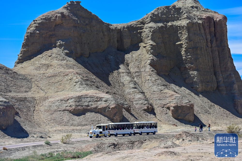 在新疆克拉瑪依市烏爾禾區世界魔鬼城景區,游客乘坐觀光車游覽(5月2日攝)。