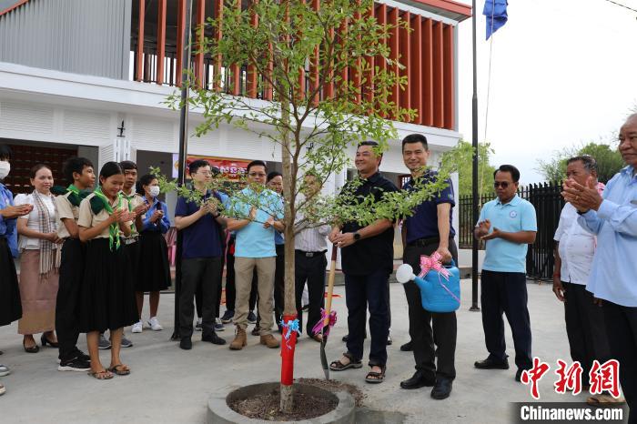 當?shù)貢r間5月12日,在距離金邊以南約60公里的一個擁有125戶家庭、500余人口的小鄉(xiāng)村,柬埔寨民間社會組織聯(lián)盟論壇主席蓋里維希揮鏟添泥,中國和平發(fā)展基金會駐柬埔寨辦事處主任劉戰(zhàn)國提壺澆水,合力種植下一棵象征著中柬友誼的隆都花樹。