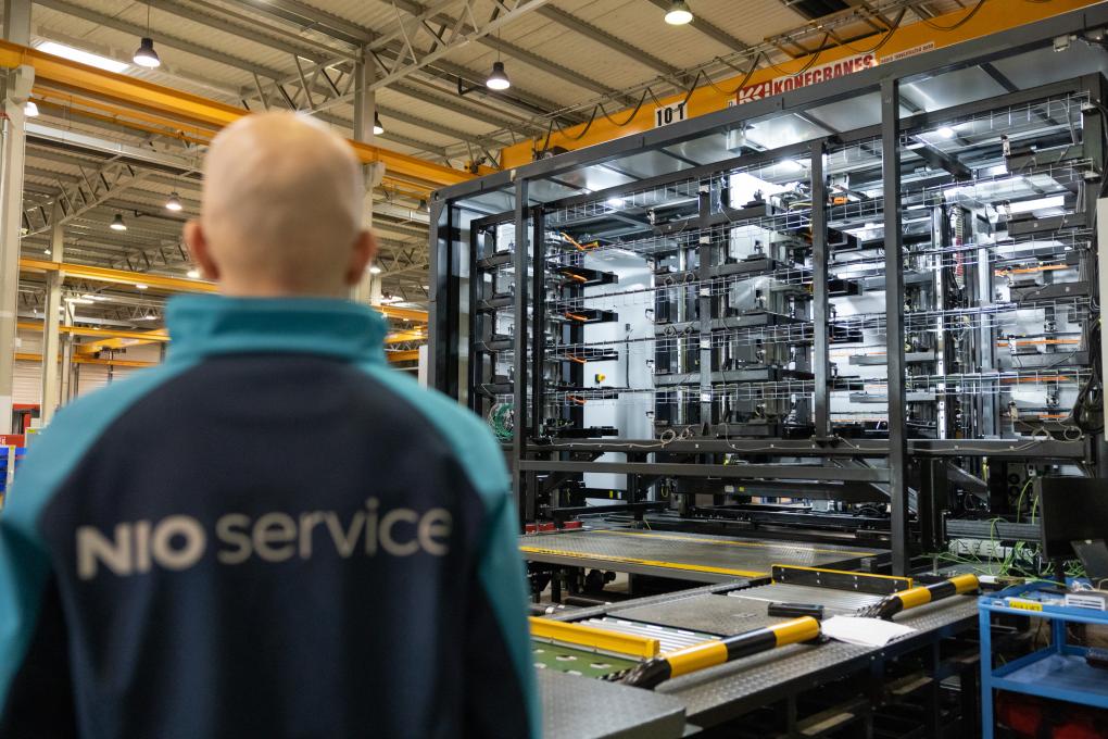 1月26日,在匈牙利比奧托爾巴吉,一名工人在蔚來能源歐洲工廠工作。新華社發(弗爾季·奧蒂洛攝)