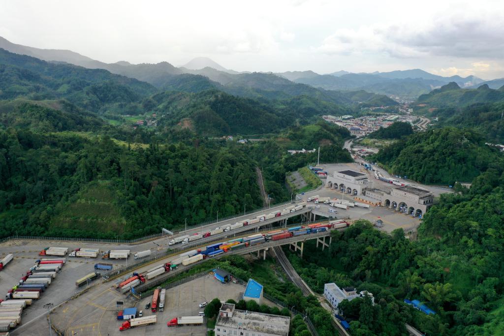 這是繁忙的廣西憑祥友誼關(guān)口岸(2023年9月9日攝,無人機照片)。新華社記者 曹祎銘 攝