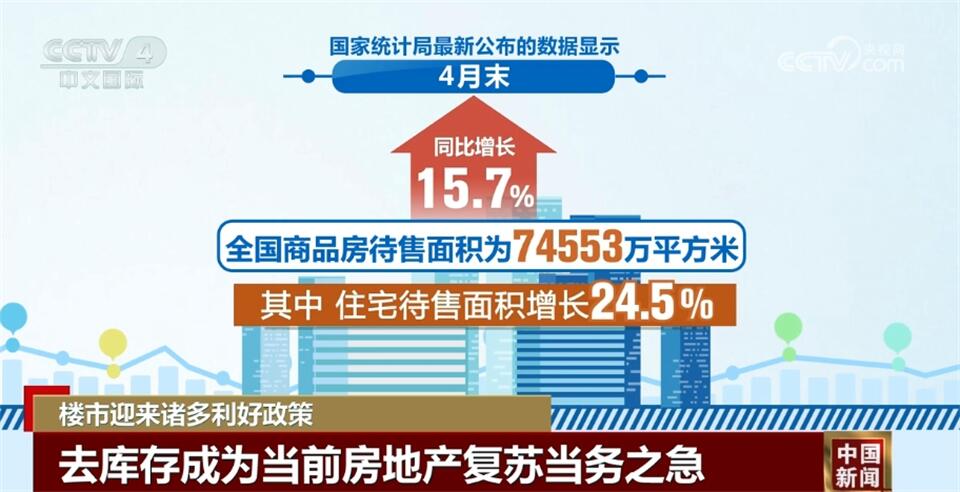 國家統計局最新公布的數據顯示,4月末,全國商品房待售面積為74553萬平方米,同比增長15.7%。其中,住宅待售面積增長24.5%。