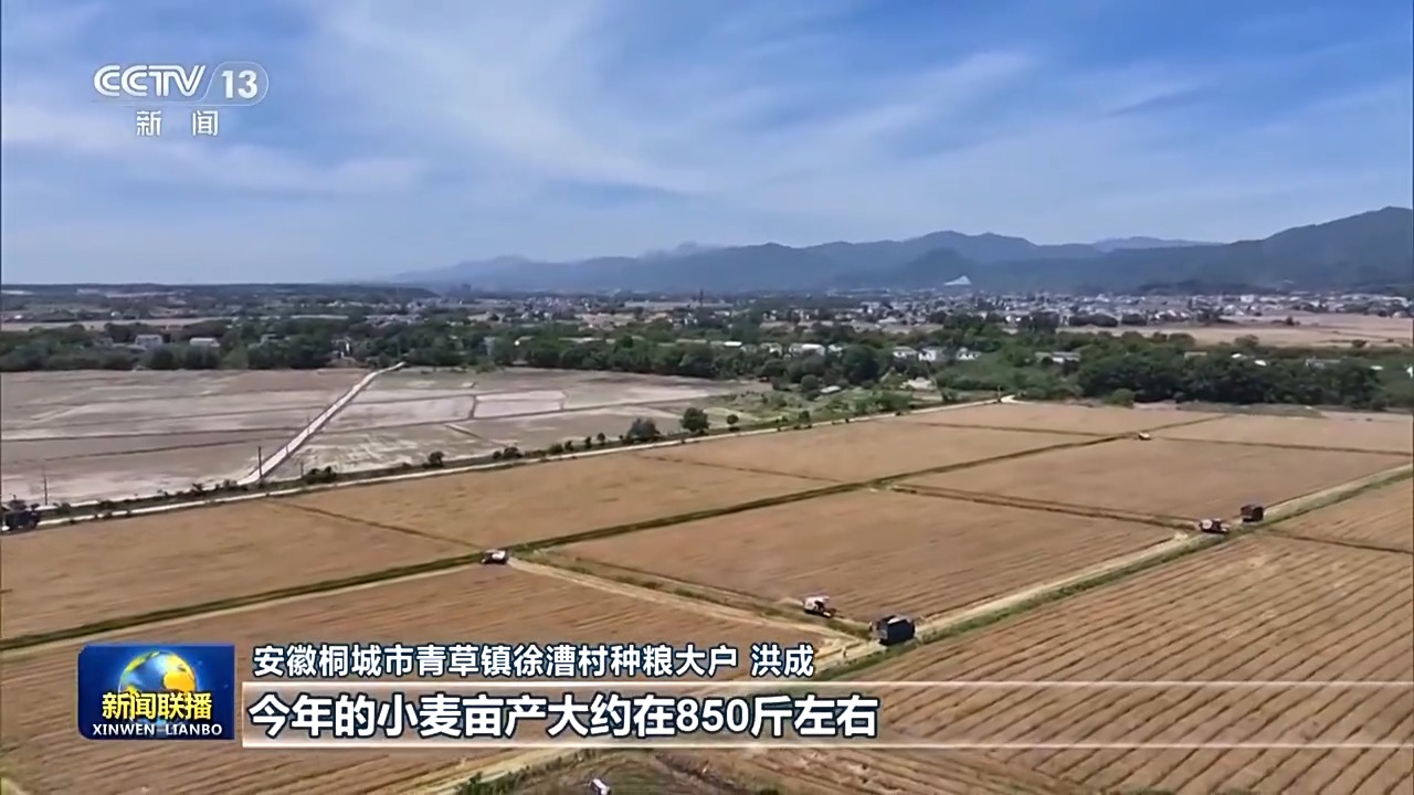 安徽桐城市青草鎮徐漕村種糧大戶 洪成:基本上實現了機械化,今年的小麥畝產大約在850斤左右,較前幾年相比來說增長了15%,畝產值大約上漲了10%左右。