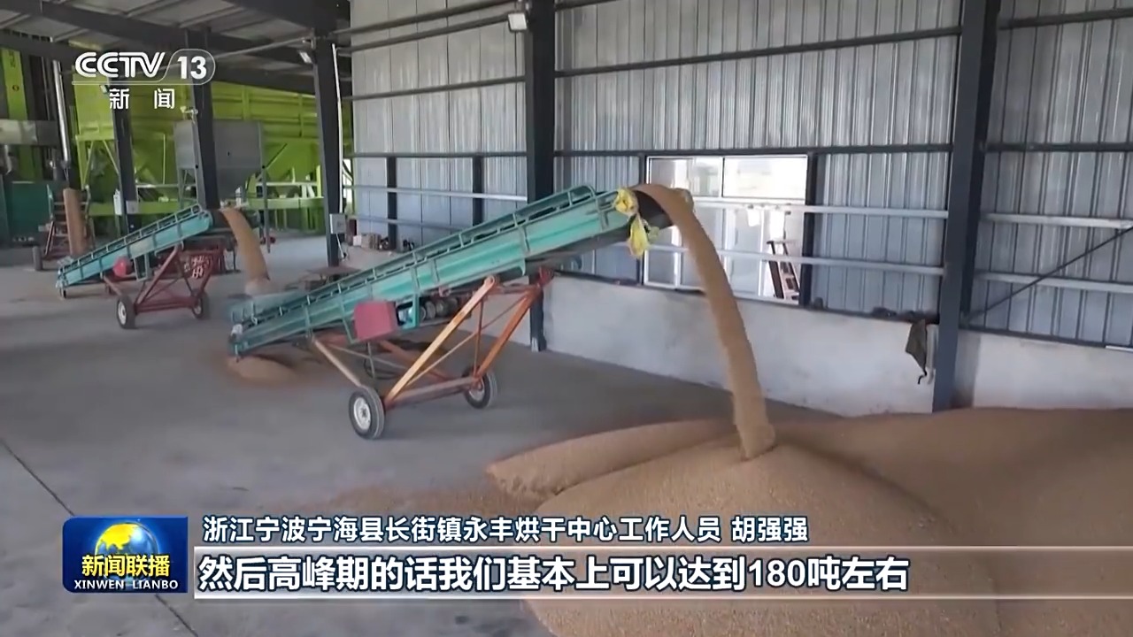 浙江寧波寧海縣長街鎮永豐烘干中心工作人員 胡強強:一天我們目前烘干量在100來噸,高峰期我們基本上可以達到180噸左右。
