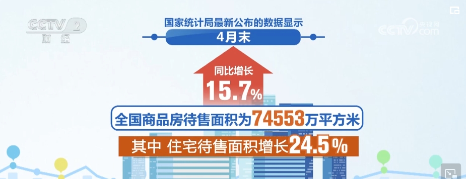 國家統計局最新公布的數據顯示,4月末,全國商品房待售面積為74553萬平方米,同比增長15.7%。其中,住宅待售面積增長24.5%。