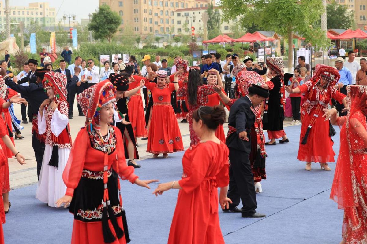(圖為在克州阿克陶縣各民族歡樂共舞 馬倩妮攝)
