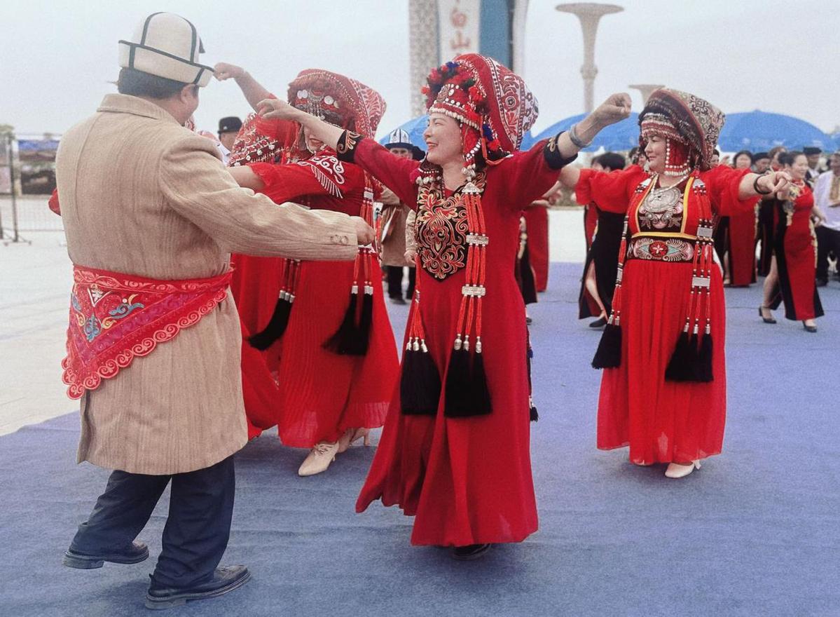(圖為柯爾克孜族歌舞互動(dòng) 馬倩妮攝)