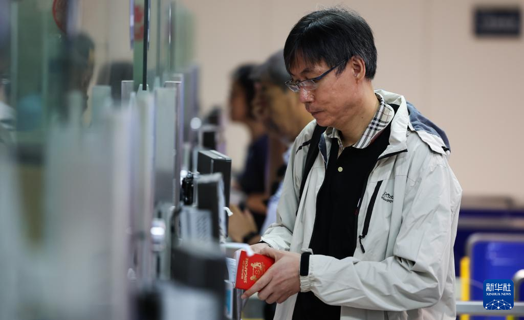 5月9日,入境旅客在海口美蘭邊檢站辦理邊檢手續(xù)后通關(guān)。當(dāng)日,記者從海口出入境邊防檢查總站了解到,擴(kuò)大59國人員免簽入境海南事由政策自今年2月9日正式實(shí)施以來,入境海南的免簽外籍旅客已超7.5萬人次,外籍游客赴瓊熱情被進(jìn)一步激發(fā)。新華社記者 楊冠宇 攝