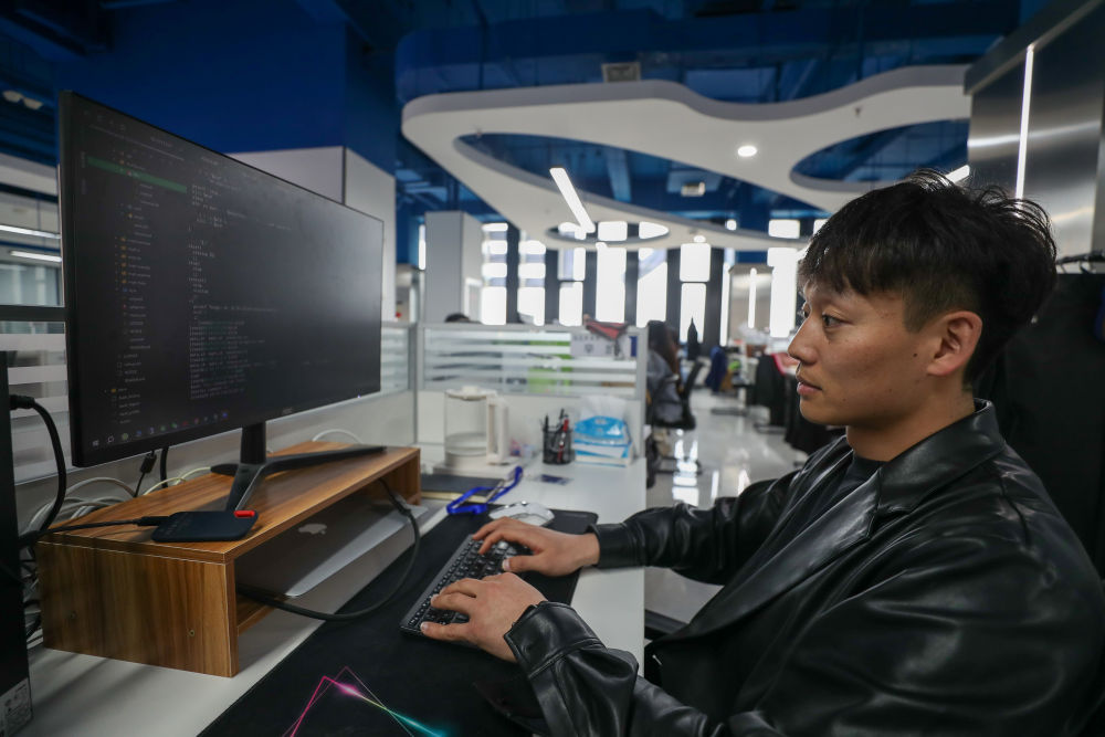 2024年4月18日,在哈爾濱工業(yè)大學人工智能研究院有限公司,科研人員在進行數(shù)據(jù)編程。新華社記者 張濤 攝