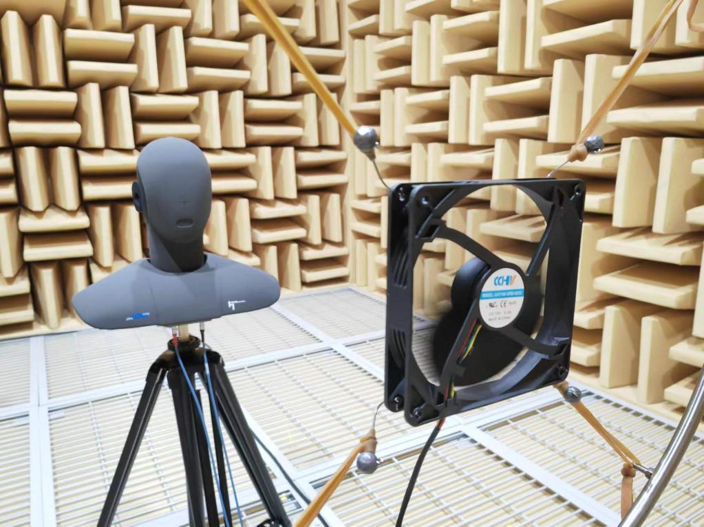 5月19日,晟輝科技實驗室內,一款風機正在接受噪音檢測。新華社記者謝希瑤 攝