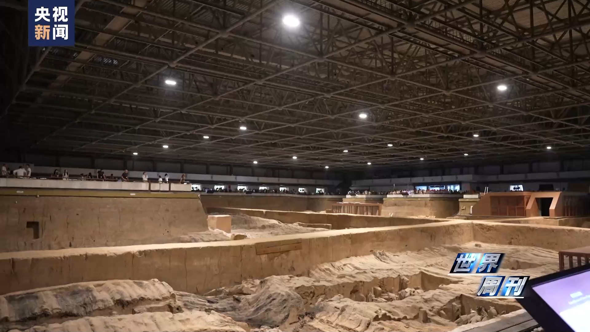 秦始皇帝陵博物院副院長 周萍:其實秦始皇帝陵博物院出土,不僅僅只有彩繪陶俑?,F在觀眾去現場去看的時候,最常看到的就是幾種材質,一種就是我們的彩繪陶俑,一種是坑內的土遺址,一種我們銅車馬是金屬文物;其實在土遺址里面,有很多很多這種木質的遺存。它這個就是我們這個隔梁在建的時候,實際上就相當于用木頭去搭了一個相當于小房子,把這些彩繪俑保存在里面。