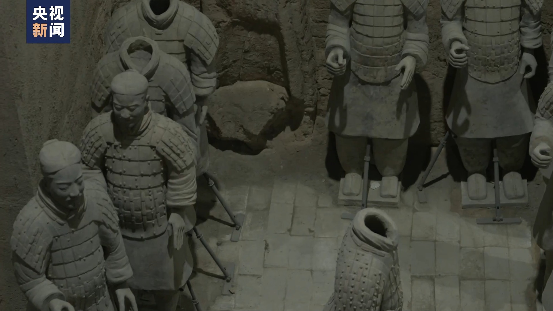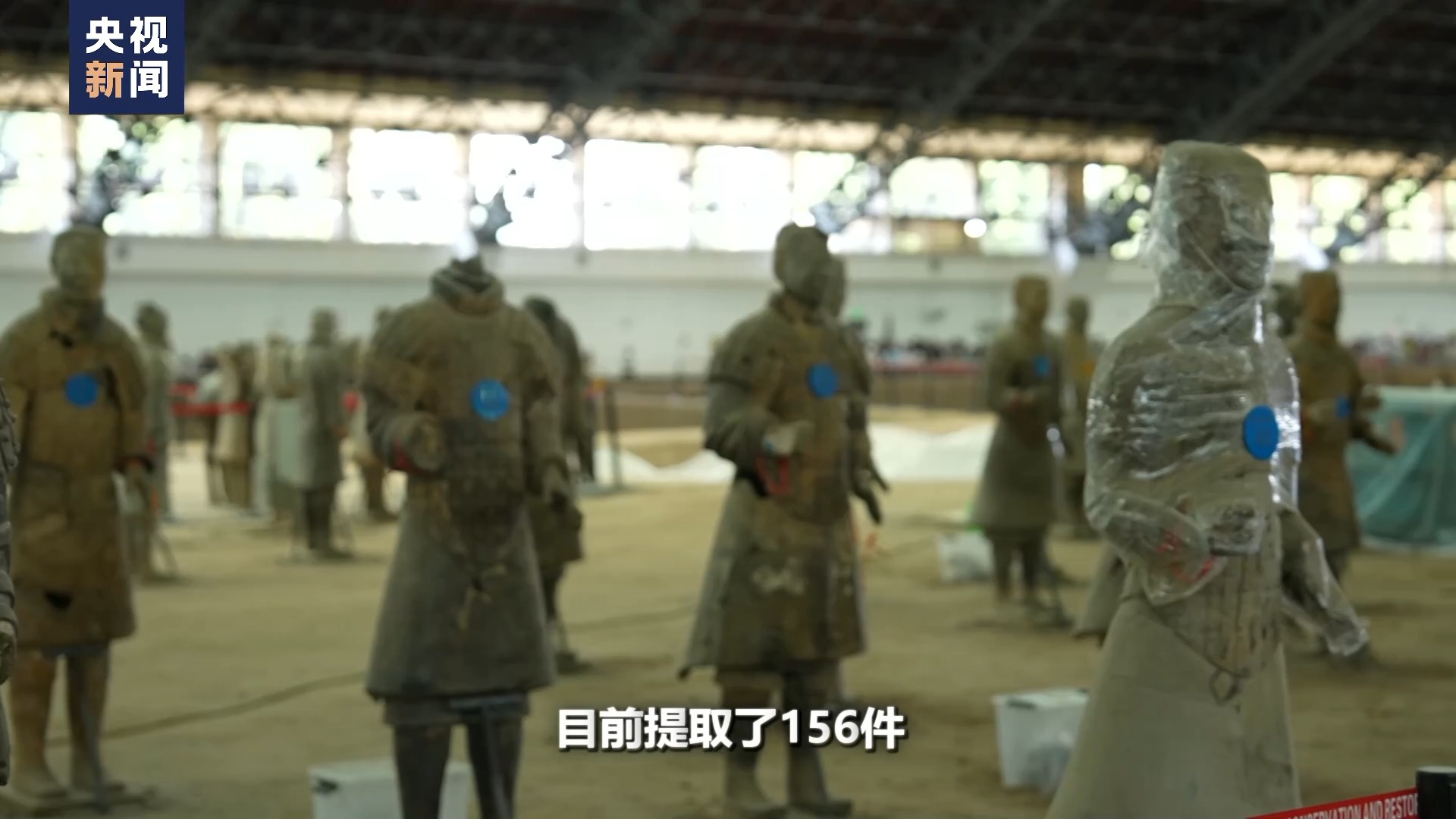 秦始皇帝陵博物院文物保護修復專家 蘭德省:第三次考古發掘,主要在秦俑一號坑T23號探方。在這個方位共挖掘了256件兵馬俑,我們剛才已經看到目前提取了156件。其中我們修復了140多件,還有一些我們正在修復。