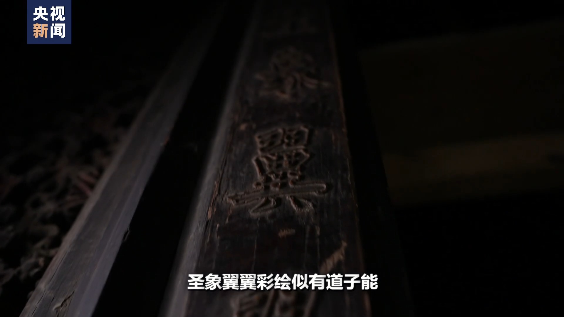 那么剛才提到楹聯里頭的下楹聯叫圣象翼翼彩繪似有道子能,它主要說這里的油漆彩畫也是非常精美,就像畫圣吳道子親自繪畫的技能一樣的精美。