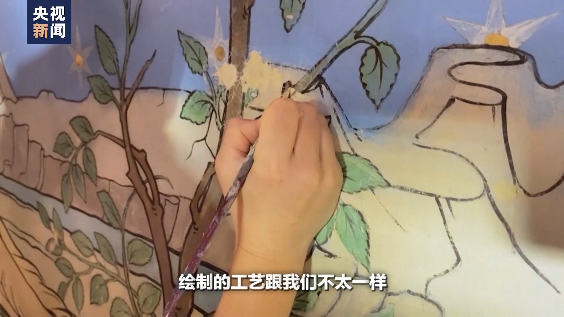 他的壁畫跟我們不太一樣,因為它是歐洲的壁畫教堂壁畫,他繪制的工藝跟我們不太一樣,我們把它一般叫濕壁畫。咱們國家相當于是干壁畫,兩個壁畫的工藝就不太一樣,修復過程中也不一樣,我們可能更多交流這樣的過程。
