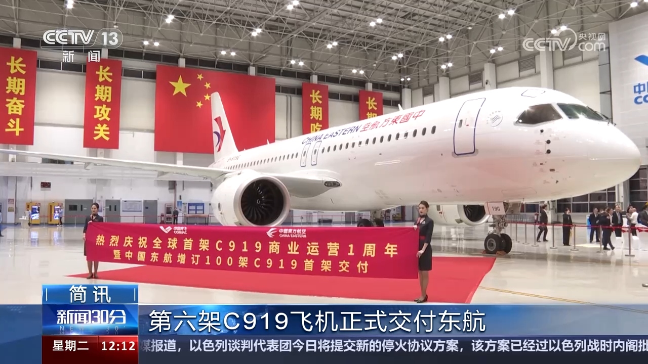 中國商飛第六架C919飛機昨天正式交付東航,這也是東航新增訂100架C919的首架機。客機在駕駛艙系統顯示、客艙娛樂系統方面都有優化升級。預計到今年底,東航C919機隊將達到10架,執飛更多新航線。