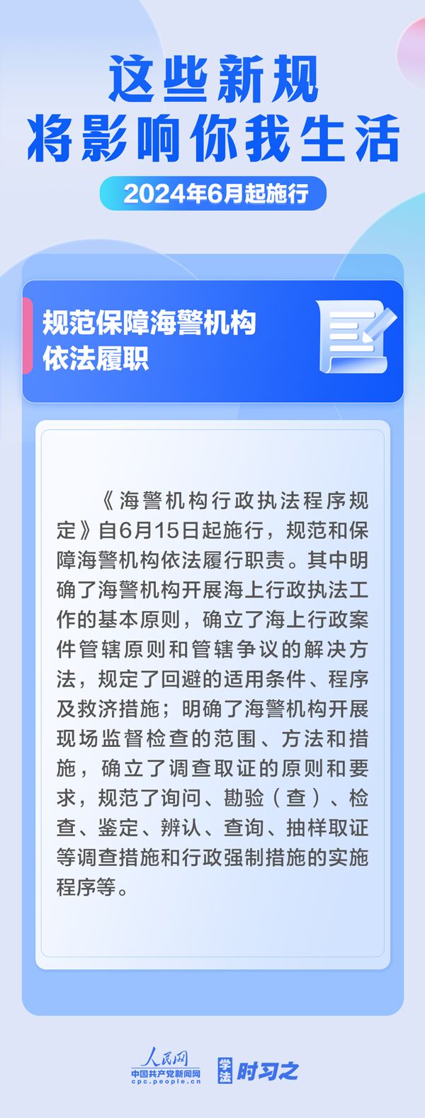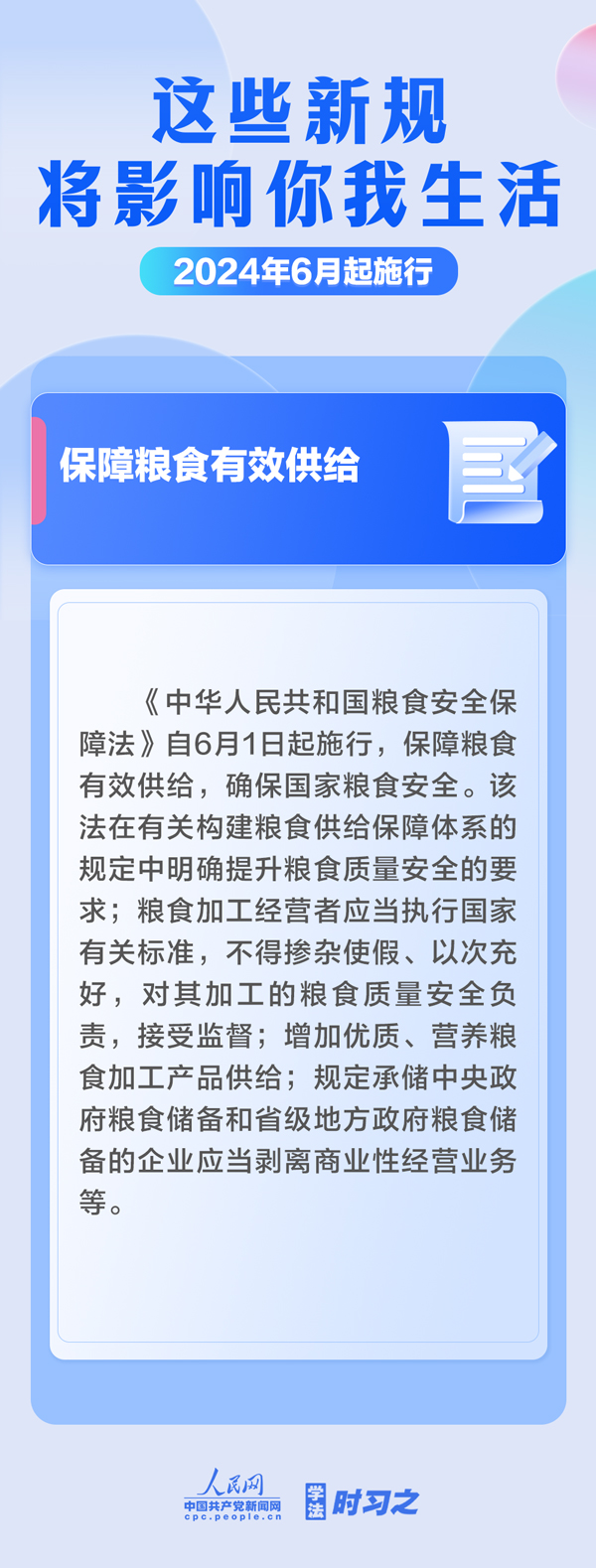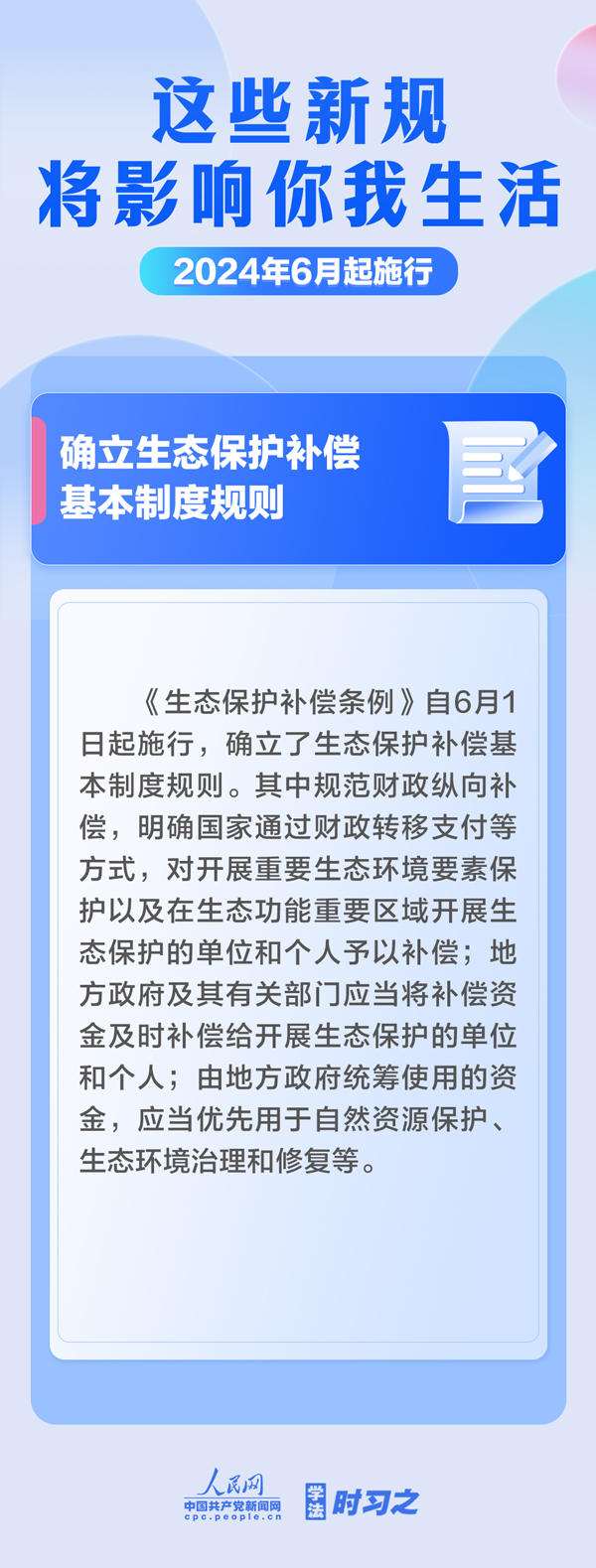 保障糧食有效供給;確立生態保護補償基本制度規則;規范保障海警機構依法履職……6月起,這些新規施行,將影響你我生活。