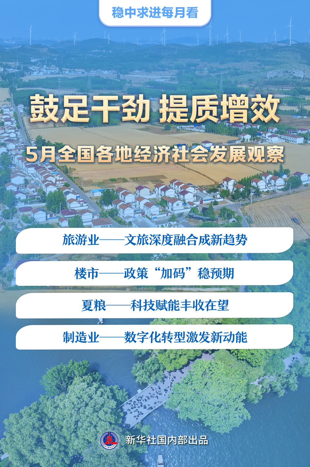 春歸夏至,萬物生長。文旅融合向“深”挺進,樓市政策優化調整,夏收以科技賦能,制造業數字化轉型提速……提質增效成為5月全國各地經濟社會發展的突出特點。