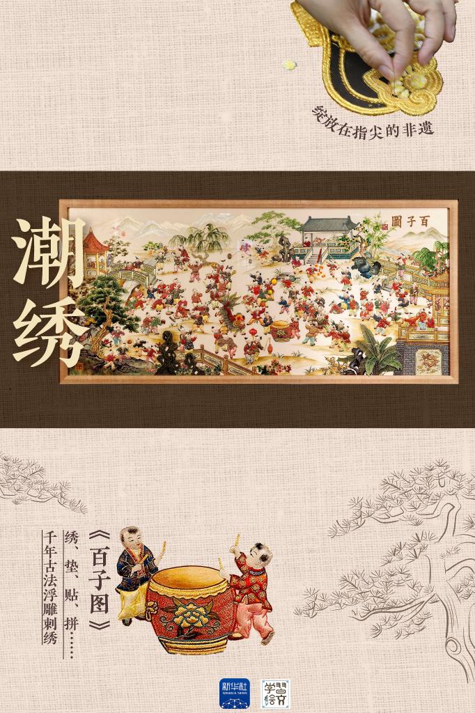 潮繡,屬我國四大名繡中的粵繡門派,最大的特點是立體墊高,以繡藝精美細致、構圖均衡飽滿著稱,色彩亮麗又具立體感。