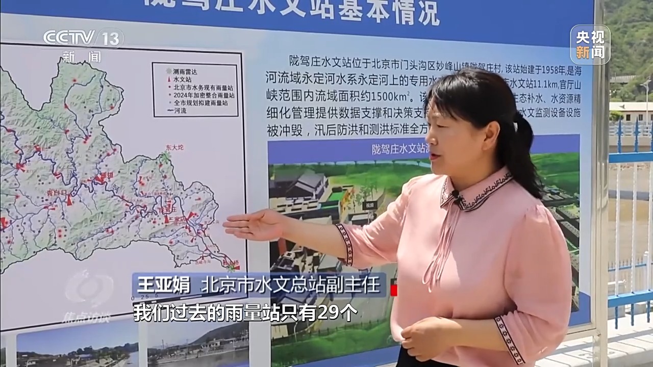 北京市水文總站副主任 王亞娟:過去雨量站只有29個,現在整個官廳山峽的雨量站達到256個,還進一步規劃,一共是384個,以后的官廳山峽的站網密度能夠達到2.5平方公里每站,這樣的話,就能提前做好準備,為它的下游提供數據支持、決策支持。