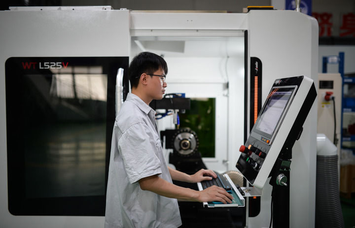 員工在位于廣東省佛山市的原點智能技術有限公司車間操作數控機床(5月16日攝)。新華社記者 李任滋 攝
